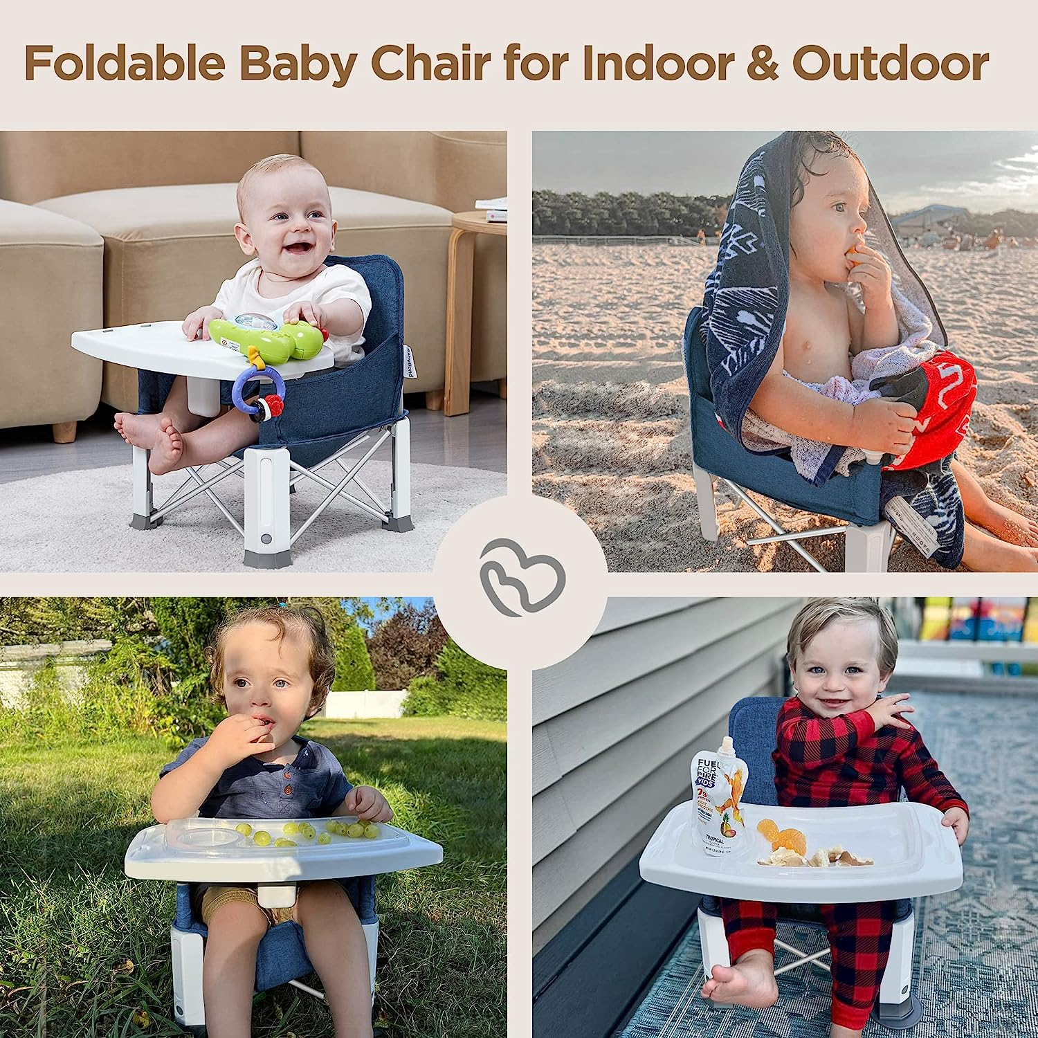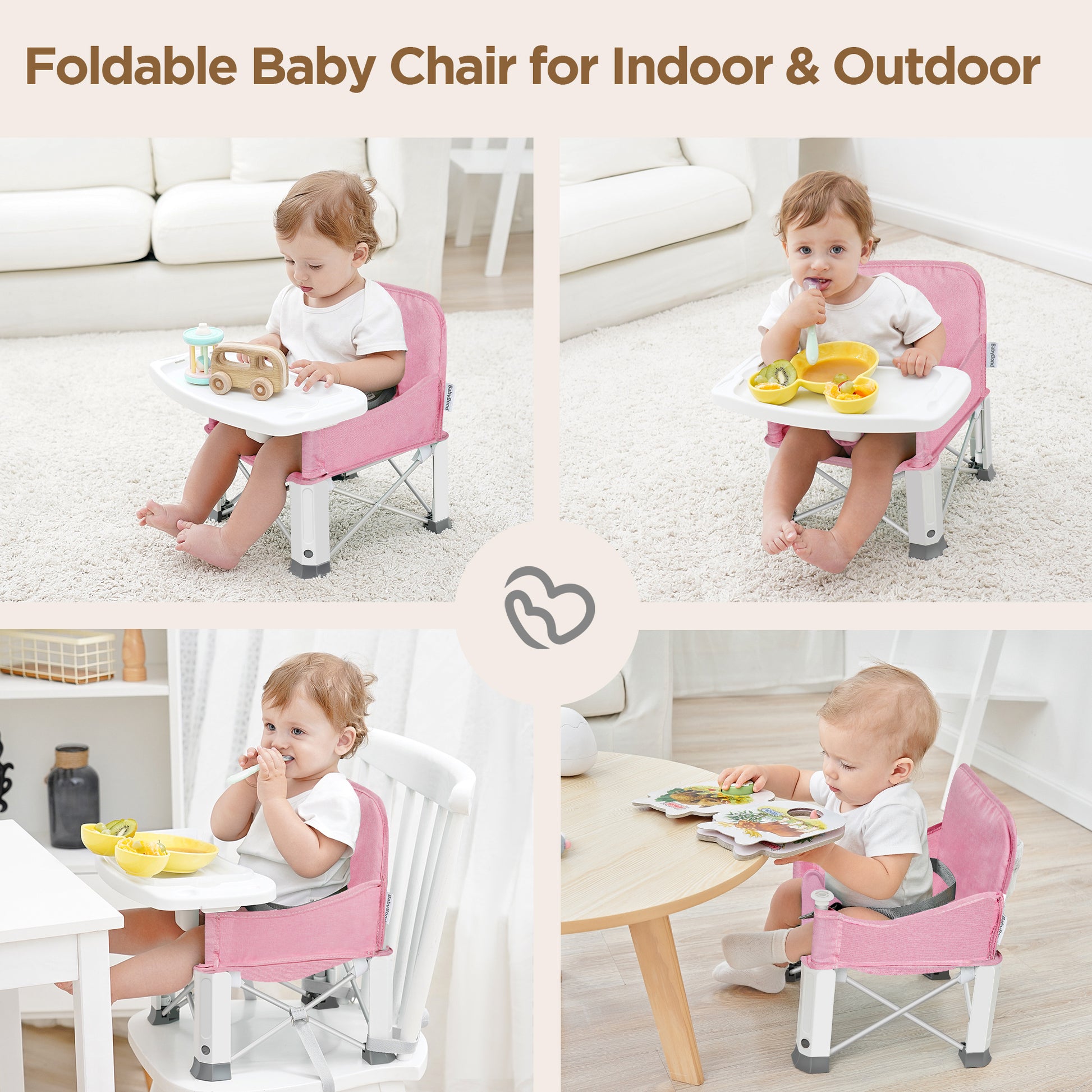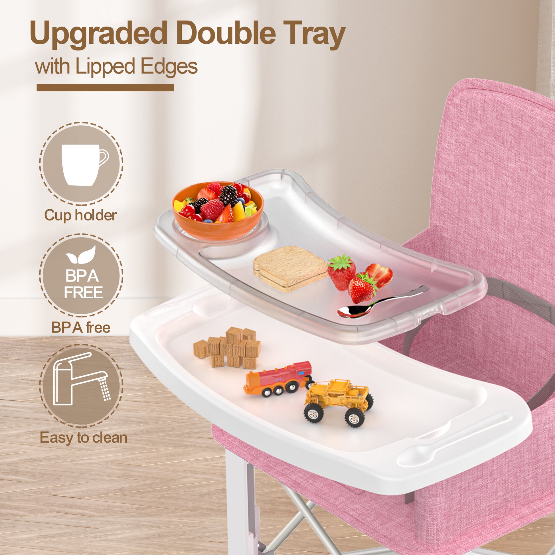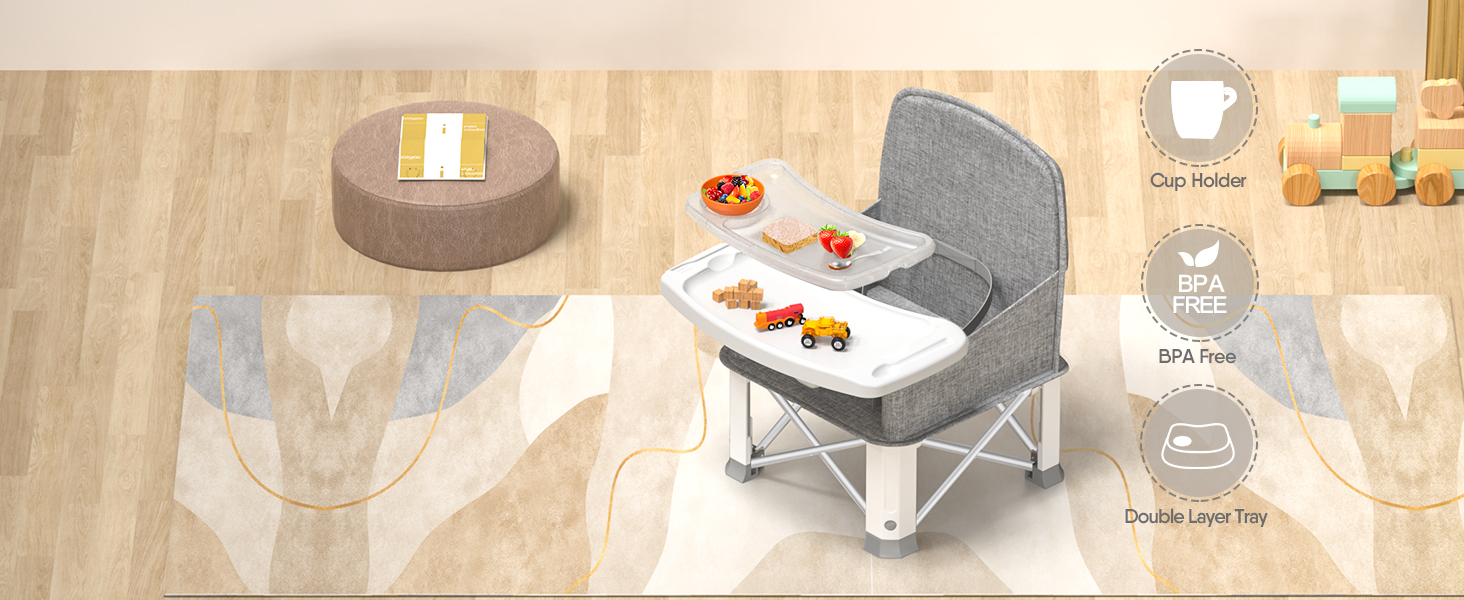 Baby Portable Booster Seat with Double Tray, BabyBond Upgraded Toddler Travel Baby Chair, Booster Seat for Dining Table, Stable and Foldable Booster Baby Chair for Indoor/ Outdoor
