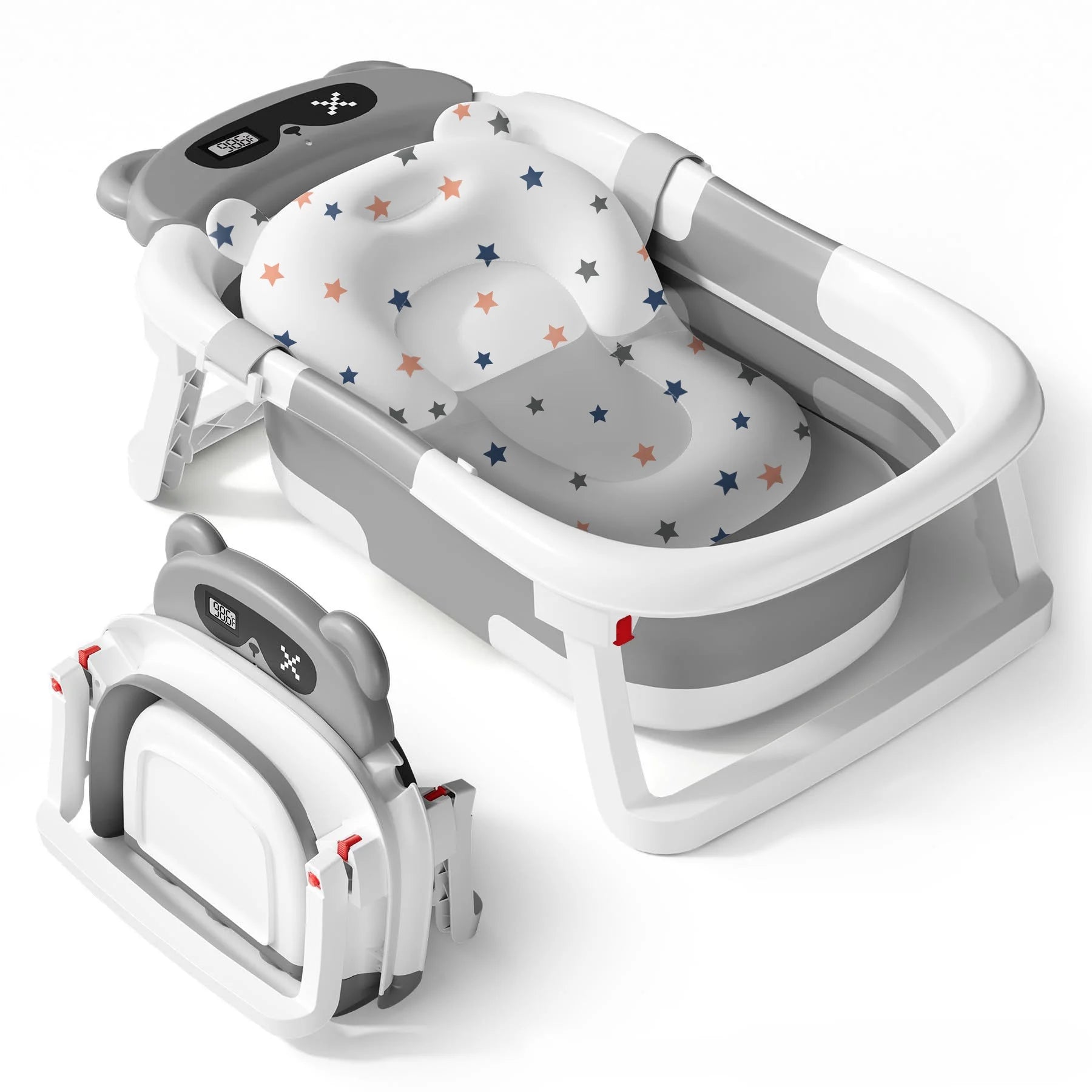 Babyomi Baby Bathtub with Durable Bath Tub and Cute Bear Thermometer, Soft Detachable Cushion No-Slip Hanging and Shower Hat, Foldable Bathtub for Newborn to Toddler, Grey(8877))